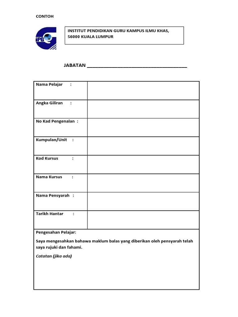 Contoh Muka Depan Kerja Kursus Pdf